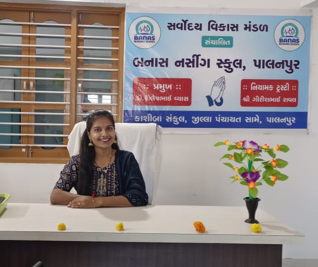 We believe that an excellent education is rooted in a humanistic approach that nurtures critical thinking and an appreciation for social and cultural diversity. We are committed to providing our students with a solid educational foundation that emphasizes evidence-based practice, scholarly activities, and the translation of health sciences knowledge to improve healthcare delivery. Our graduates are equipped with critical thinking skills, advanced clinical practice knowledge, and the ability to integrate the latest research findings to deliver comprehensive, safe, and effective patient care. We value each student’s presence in our college and are dedicated to supporting their journey towards becoming compassionate and competent nursing professionals. Smt. Dinuben P. Gamit        Principal Banas Nursing School   (P.Basic Nursing)